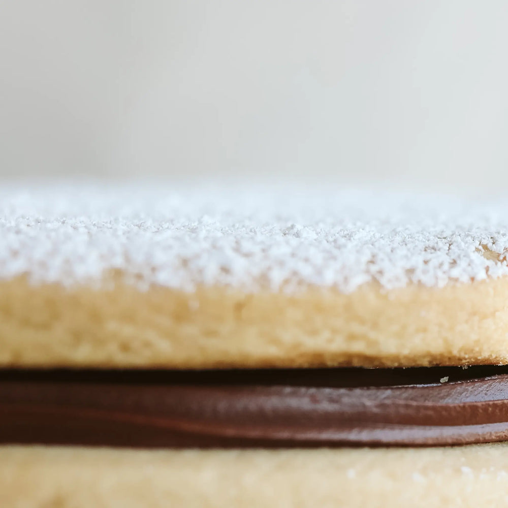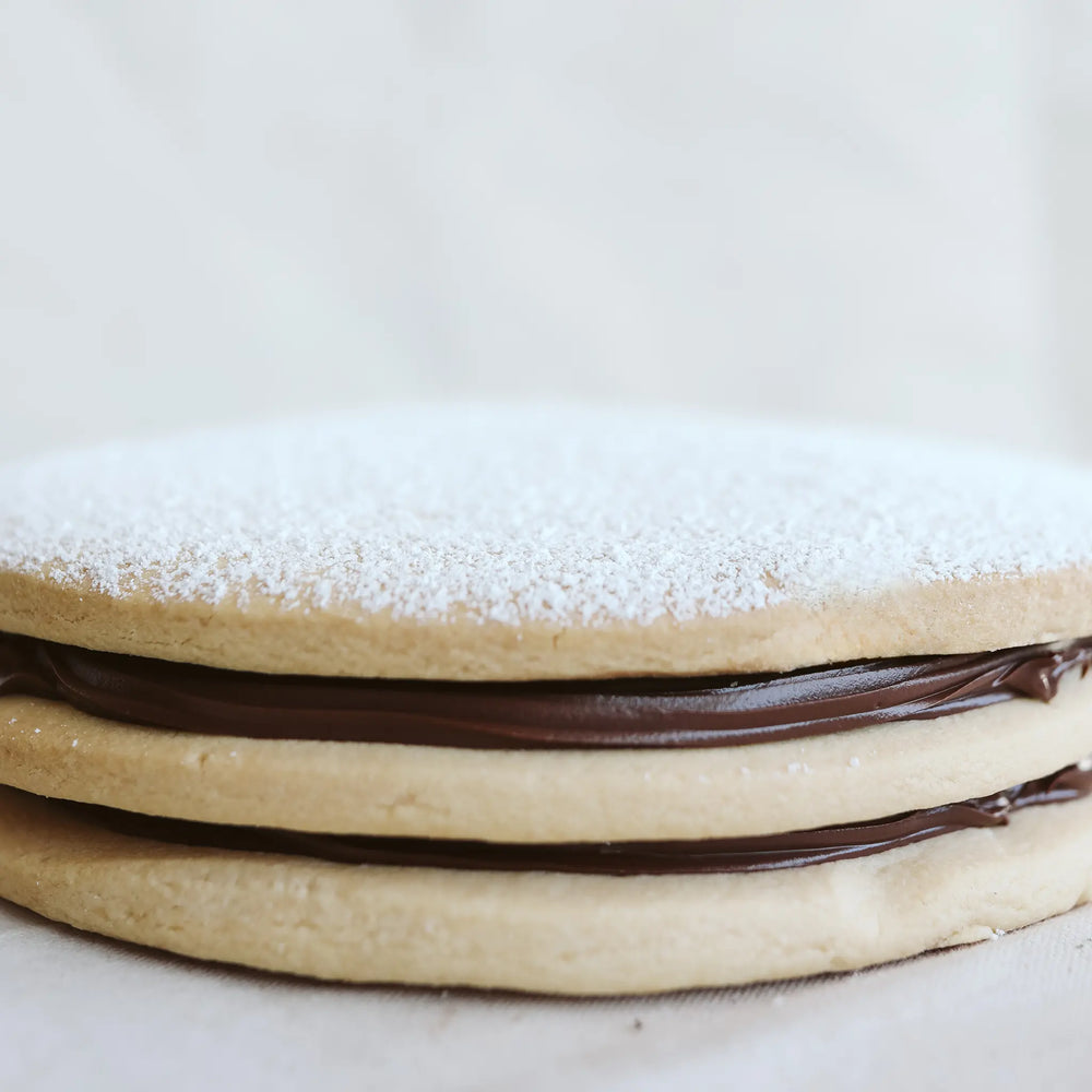 Shortbread cookie layers filled with rich chocolate hazelnut cream.