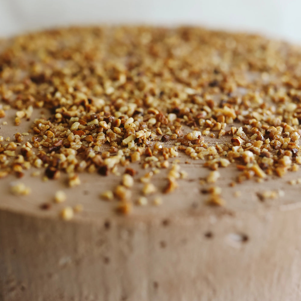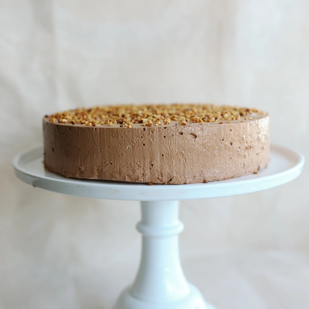 Chocolate buttercream mousse filled with crunchy cookies and topped with crushed almond crunch. A Latin favorite. Served frozen.