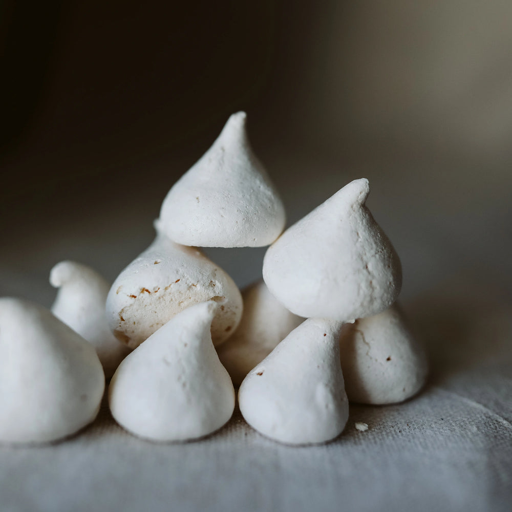 Airy and crisp on the outside, with a whisper of sweetness that dissolves delicately on the tongue. Each kiss is light as a cloud, and impossible to eat just one.